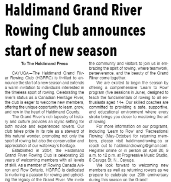 Closing date for Learn To Row registration: May 31st, 2025